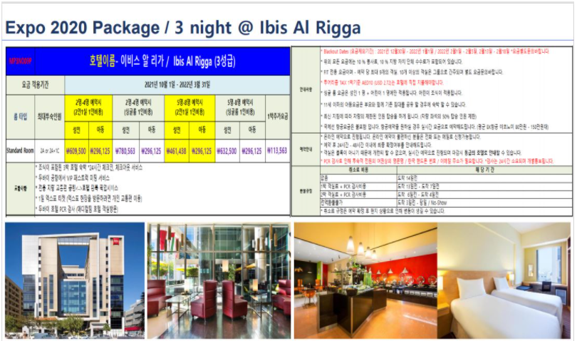 EXPO 2020 DUBAI - [엑스포 3박 패키지 ] - (호텔 Ibis AI Rigga급)